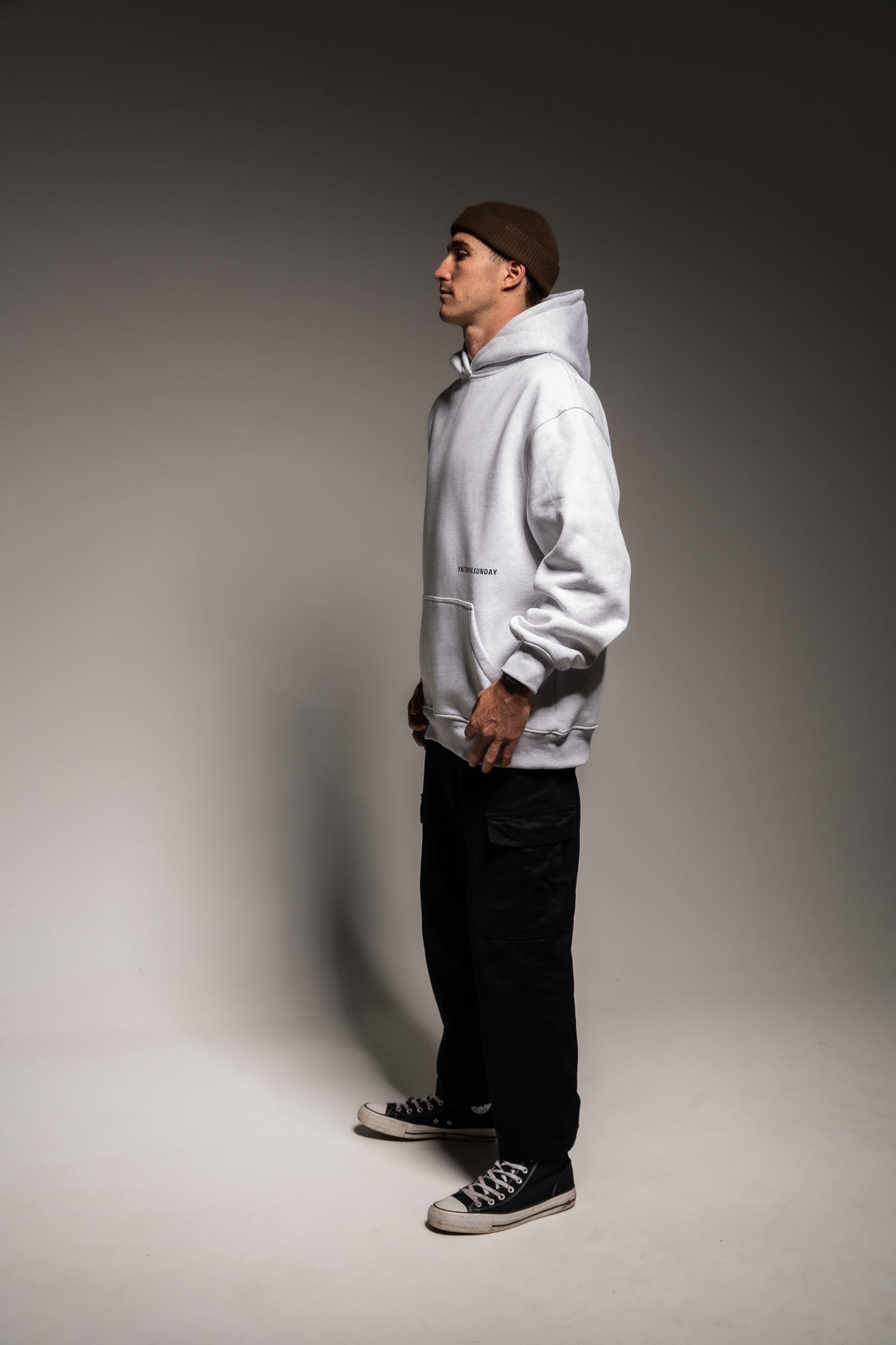 HEAVYWEIGHT FEEL 380GSM COTTON/POLY. WHITE MARLE IN COLOUR. OVERSIZED HOOD AND KANGAROO POCKET.